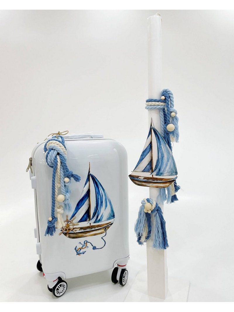 Βαπτιστικό Σετ Let Your Dreams Set Sail με χρώματα φυσικό και μπλε.