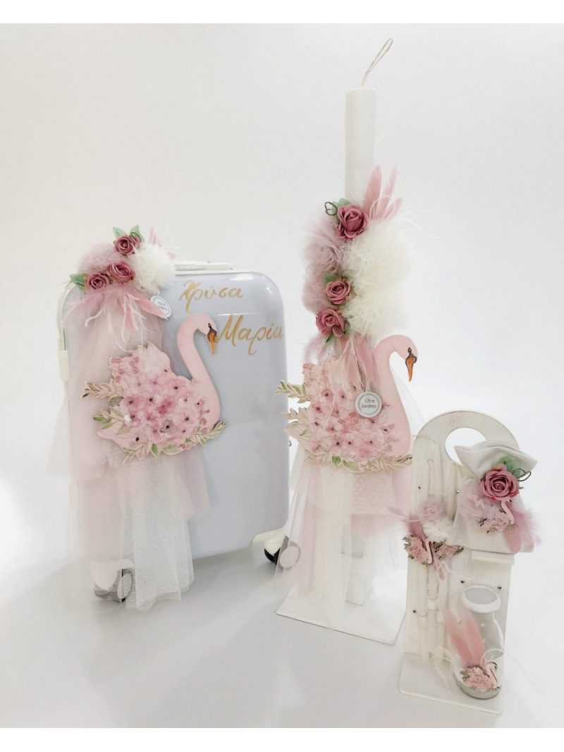 Βαπτιστικό Σετ Swan με χρώματα σάπιο μήλο και λευκό K21-016