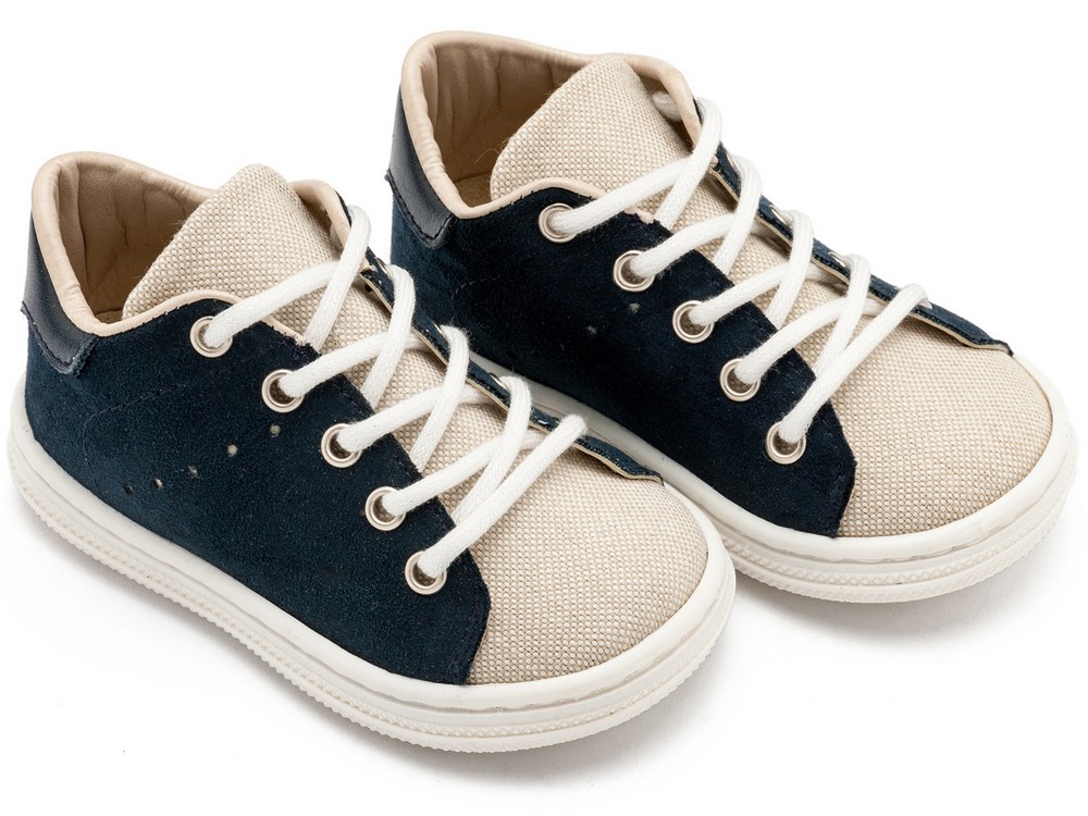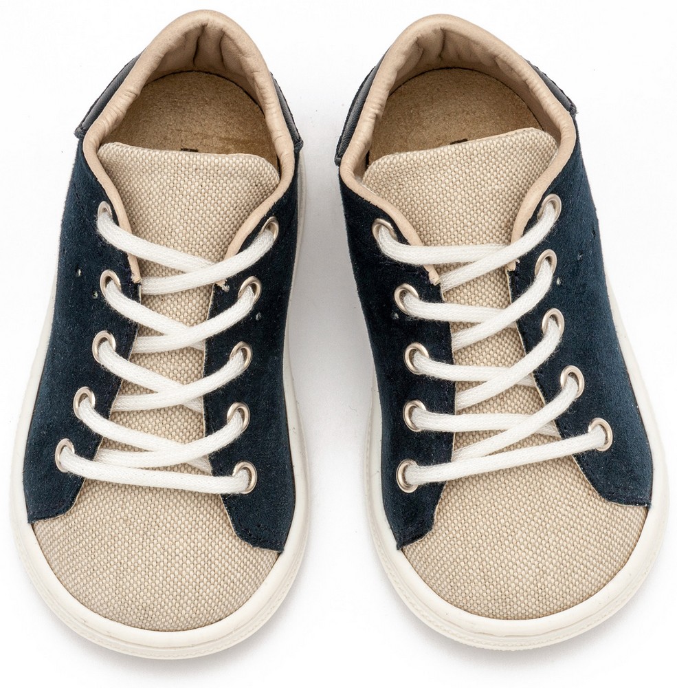 Δίχρωμα Δετά Σνίκερ από Ύφασμα και Δέρμα σε Μπεζ Μπλε Χρώμα
