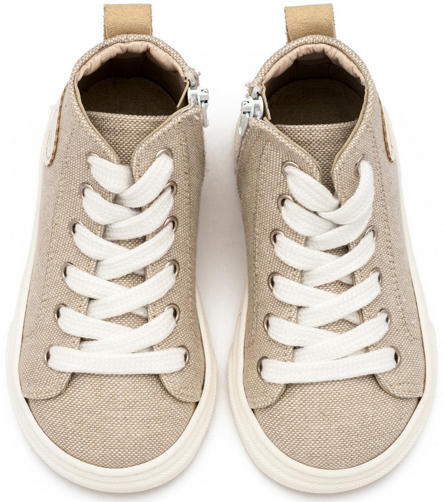 Υφασμάτινο Δετό Μποτάκι Sneaker με Φερμουάρ στο Πλάι σε Μπεζ Χρώμα