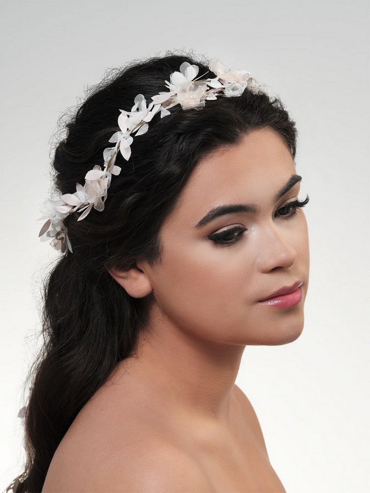 Διάδημα από ύφασμα με στολισμό από κεντημένα τρισδιάστατα λουλούδια BB-476