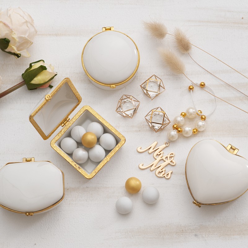 Μπιζουτιέρα λευκή από πορσελάνη με κούμπωμα σε χρυσό χρώμα.