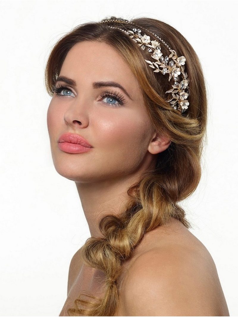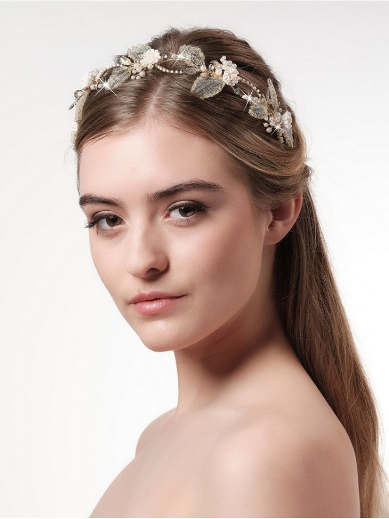 Deluxe τιάρα διακοσμημένη με λουλούδια, φύλλα, πέρλες και στρας BB-659