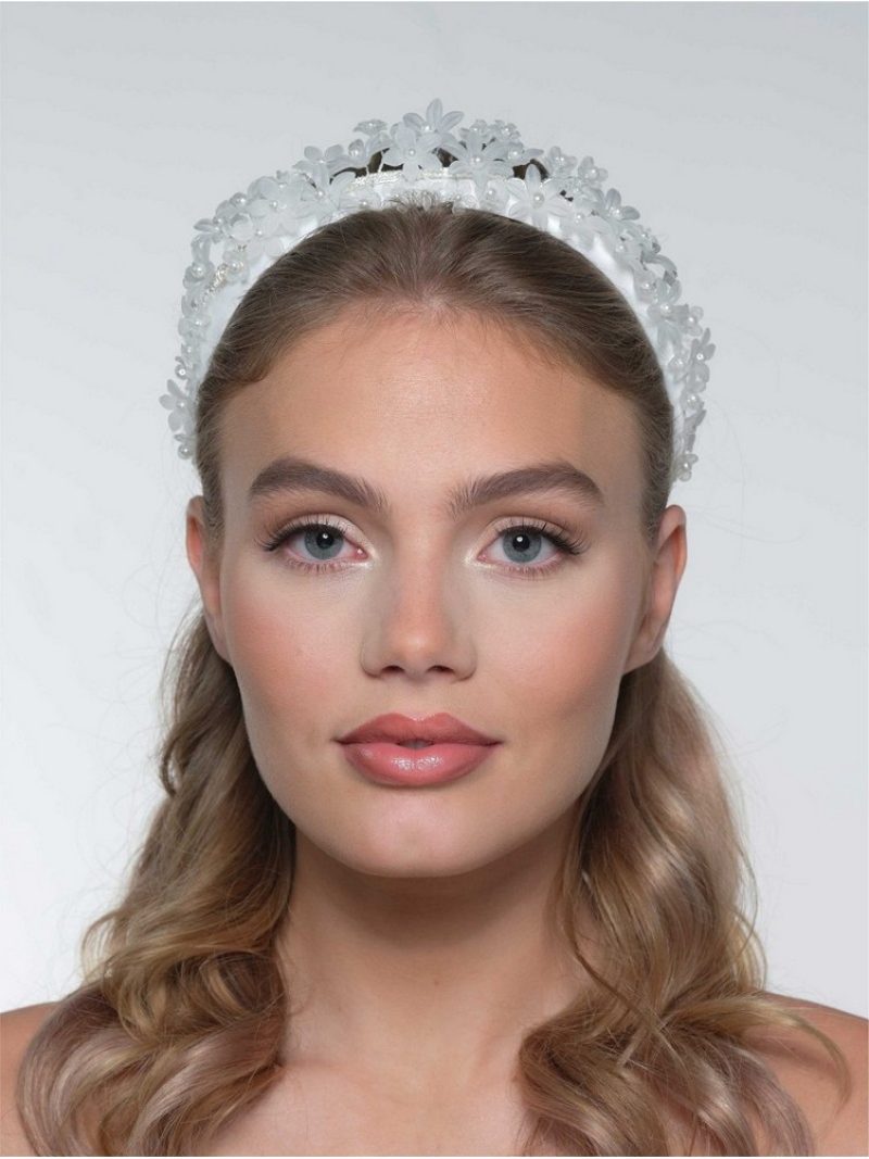 Διάδημα από ύφασμα με στολισμό από κεντημένα τρισδιάστατα λουλούδια BB-476