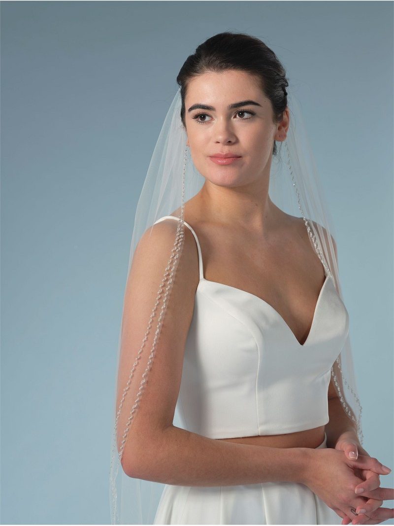 Πέπλο από μαλακό τούλι μονής στρώσης διακοσμημένο με χάντρες και κρύσταλλα στην άκρη του | Μήκος: 120 cm S443-120–1–SOFT