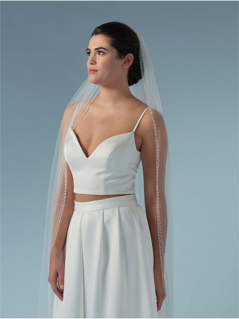 Πέπλο από μεσαίο τούλι μονής στρώσης διακοσμημένο με μοτίβο λωρίδων με χάντρες και πέρλες | Μήκος: 300 cm S445-300–1–MED