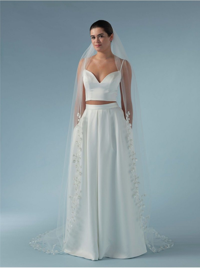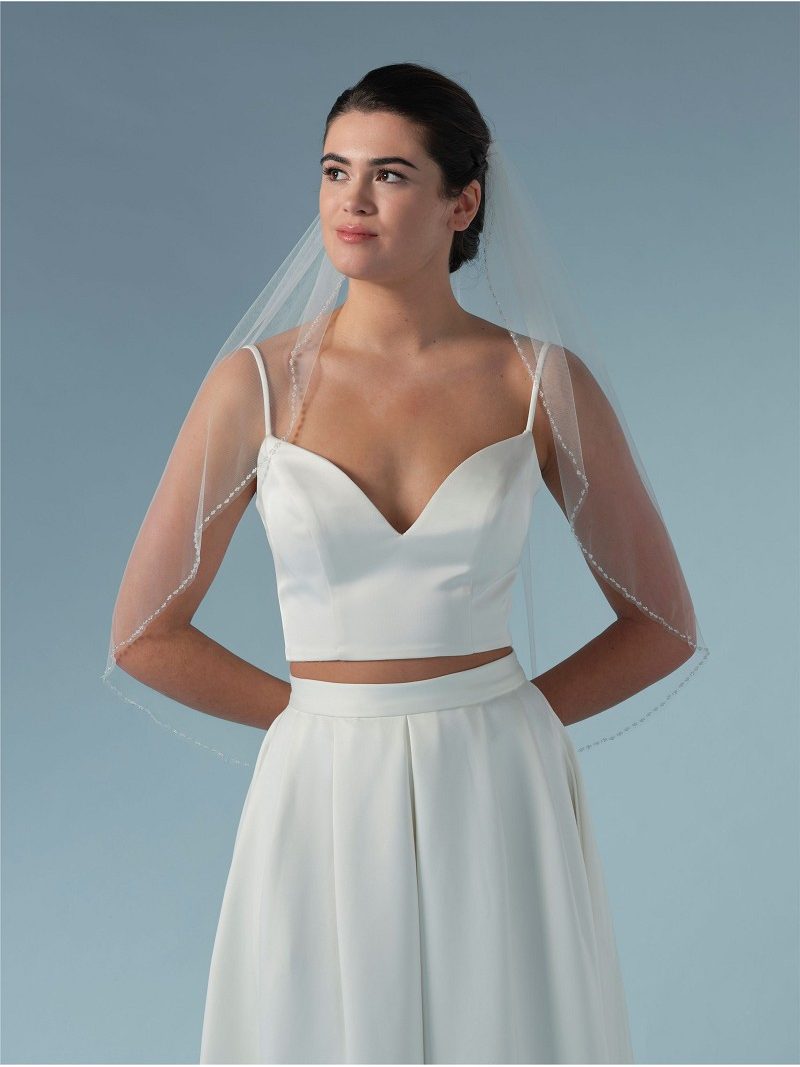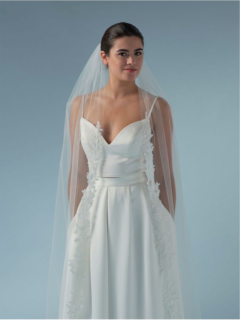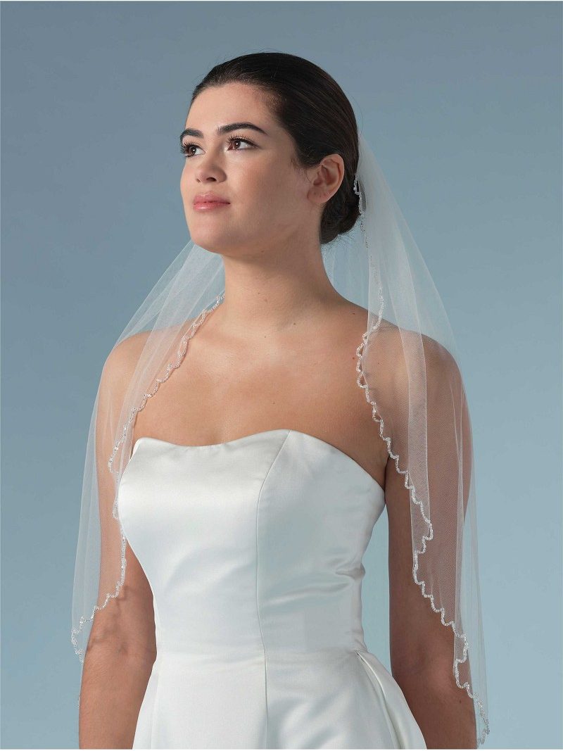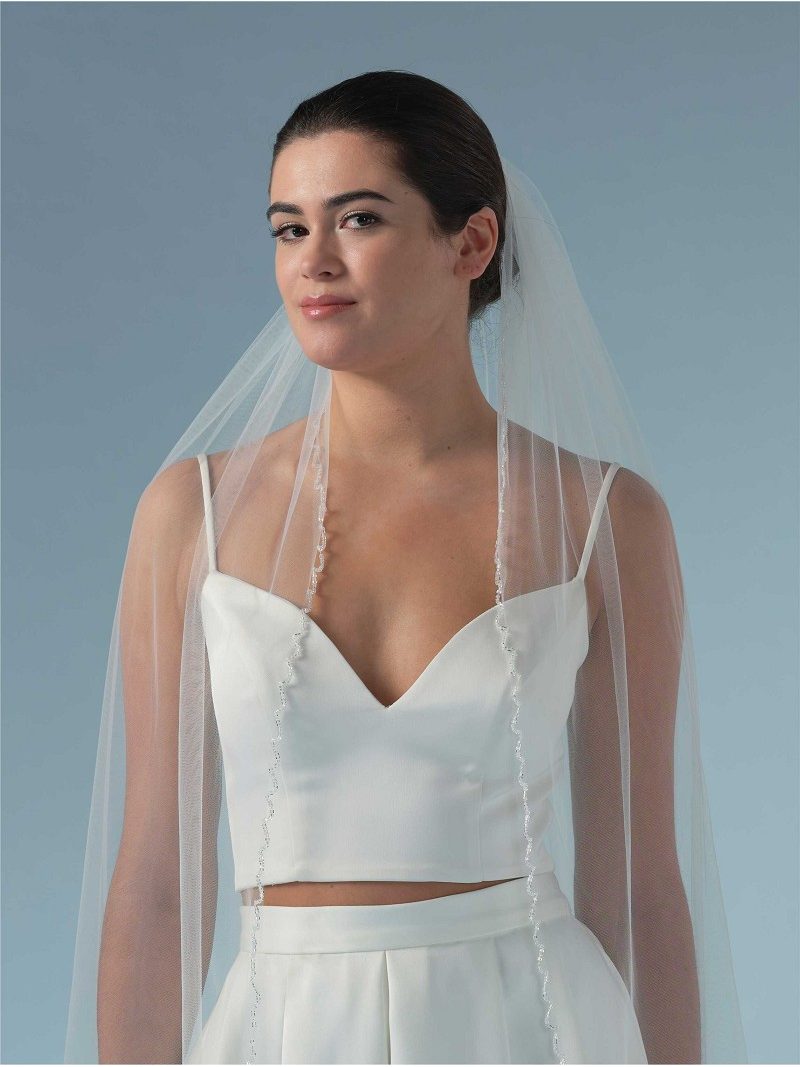 Πέπλο από απαλό τούλι σε χρώμα ιβουάρ μονής στρώσης διακοσμημένο με κρύσταλλα στην άκρη του | Μήκος: 75 cm S461-075–1–SOFT