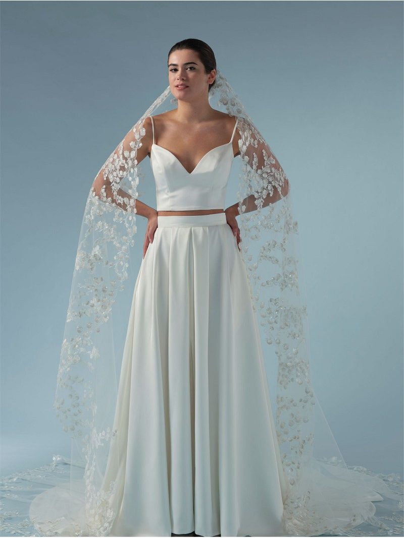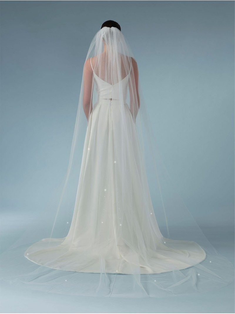 Πέπλο από μαλακό τούλι μονής στρώσης διακοσμημένο με χάντρες και κρύσταλλα στην άκρη του | Μήκος: 210 cm S443-210–1–SOFT