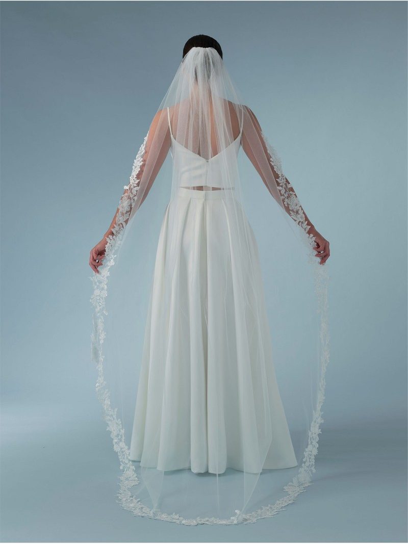 Πέπλο από μεσαίο τούλι μονής στρώσης διακοσμημένο με σχέδιο λουλουδιών και φύλλων στην άκρη του | Μήκος: 300 S446-300–1–MED