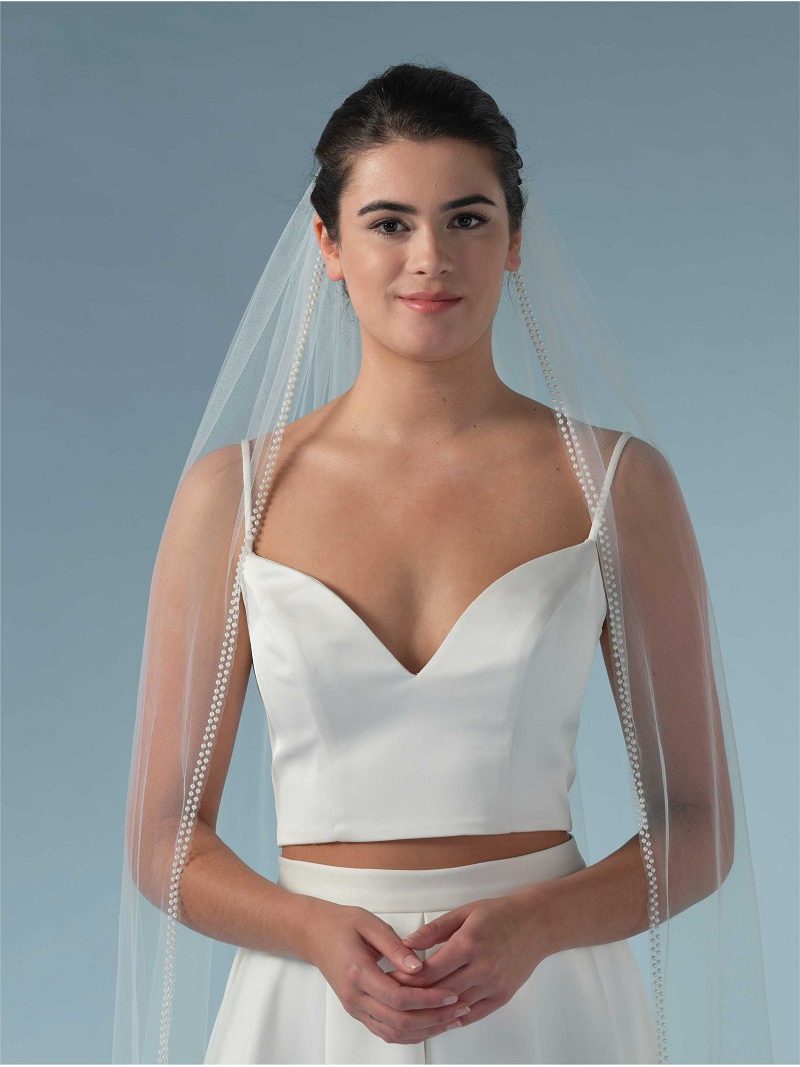 Πέπλο από μαλακό τούλι μονής στρώσης διακοσμημένο με πέρλες διαφορετικών μεγεθών στην άκρη του | Μήκος: 120 cm S442-120–1–SOFT