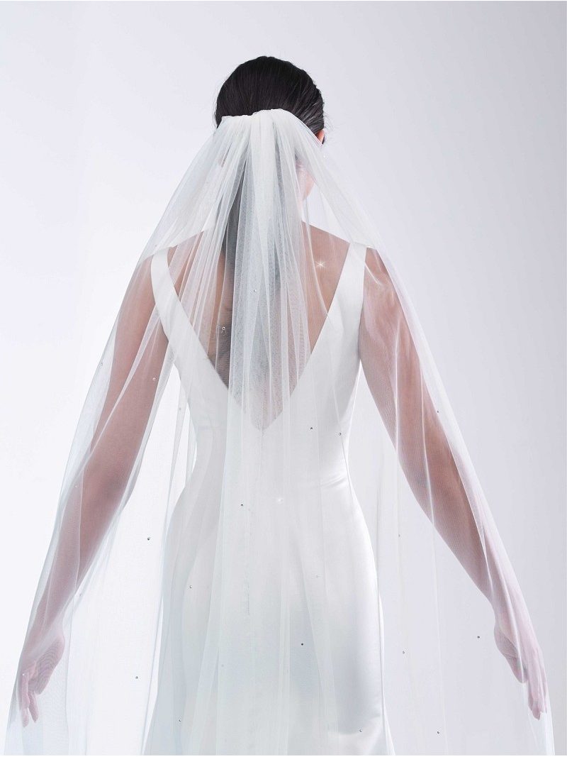 Πέπλο από μαλακό τούλι μονής στρώσης διακοσμημένο με αστραφτερά, διάφανα κρύσταλλα 280cm S31-280–1–SOFT