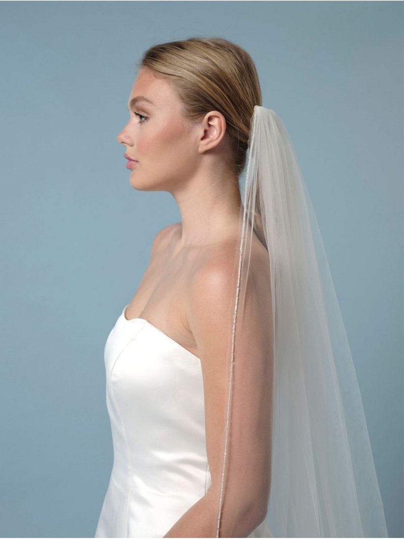 Πέπλο από μαλακό τούλι μονής στρώσης διακοσμημένο με χάντρες στις άκρες του S43-210–1–SOFT