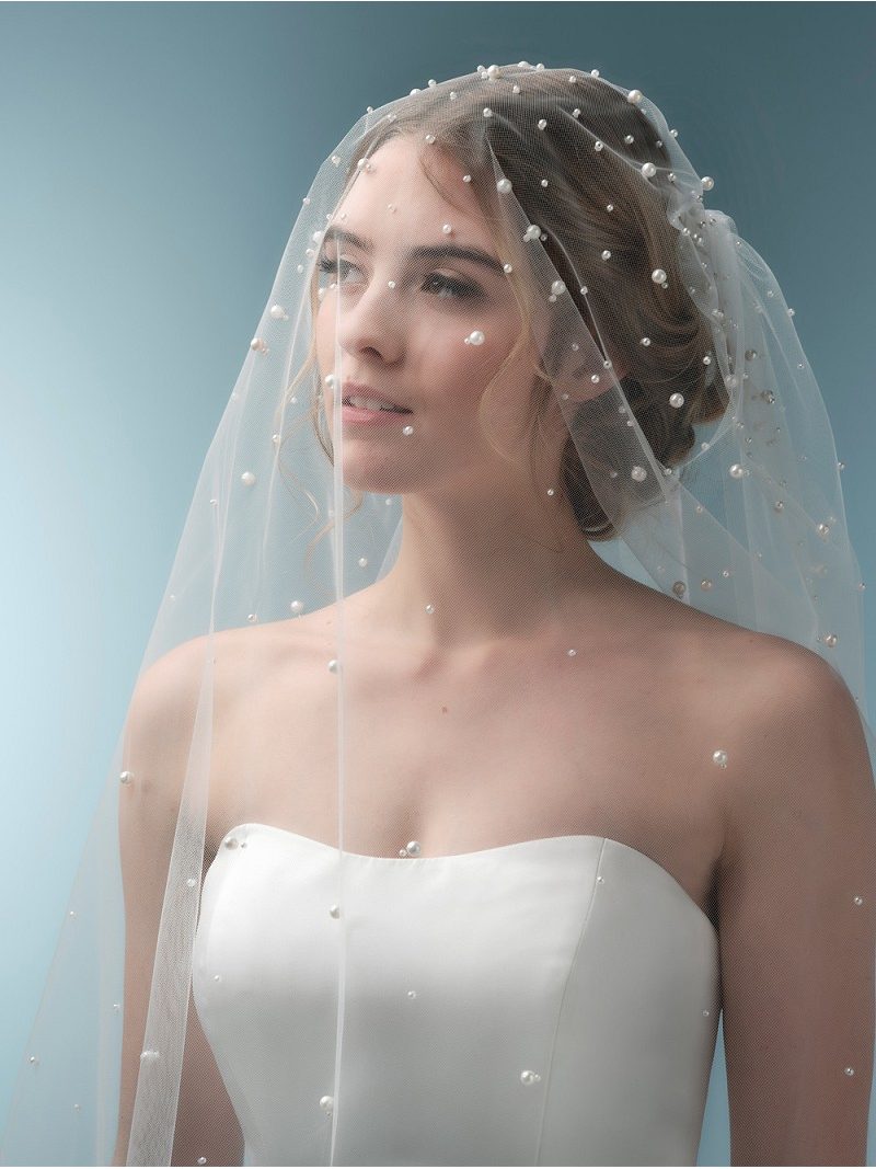 Πέπλο από μαλακό τούλι μονής στρώσης διακοσμημένο με πέρλες διαφορετικών μεγεθών στην άκρη του | Μήκος: 75 cm S442-075–1–SOFT