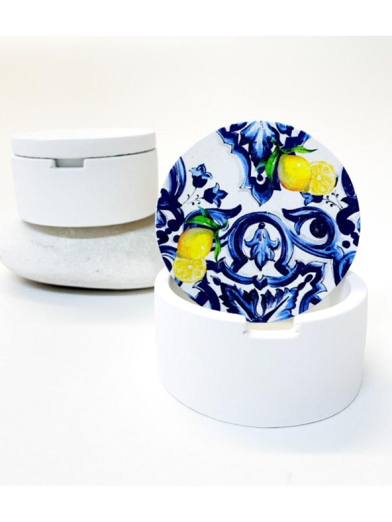 Χειροποίητo Γύψινo Αρωματικό Κουτάκι με Εκτυπωμένη Ζωγραφική | Διάσταση : Φ7,5εκ. Χ 4,5εκ.