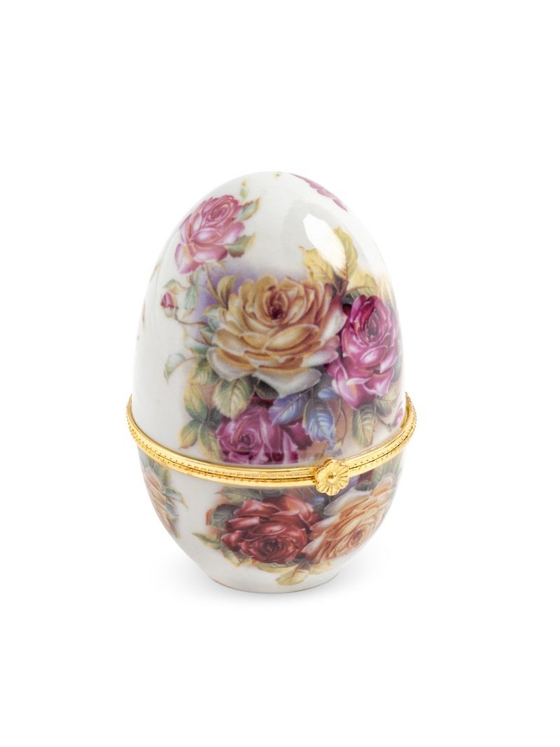 Μπιζουτιέρα από πορσελάνη διακοσμημένη με λουλούδια και με κούμπωμα σε χρυσό χρώμα,κατάλληλη και για γάμο.