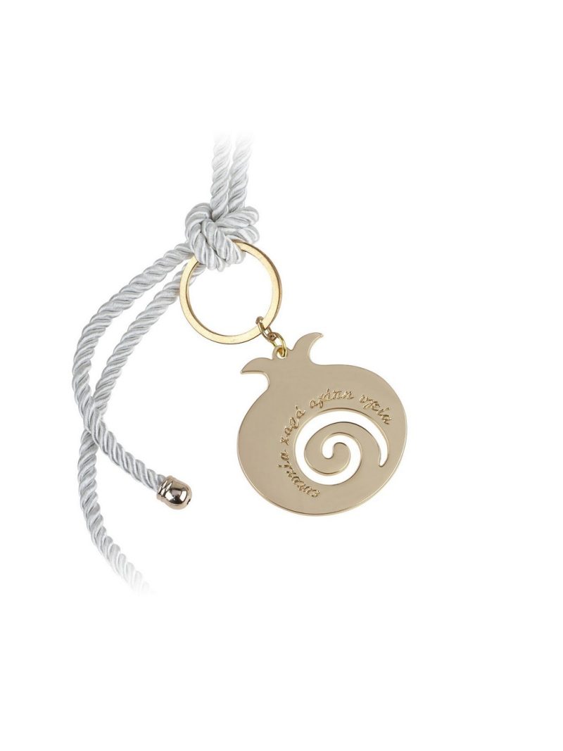 Ανοίξτε την πόρτα σε έναν κόσμο μοναδικής αισθητικής με αυτήν την εξαιρετική δημιουργία, όπου το μαγευτικό σύμβολο του ροδιού συνδυάζεται με έναν κομψό μπρελόκ - κόσμημα.