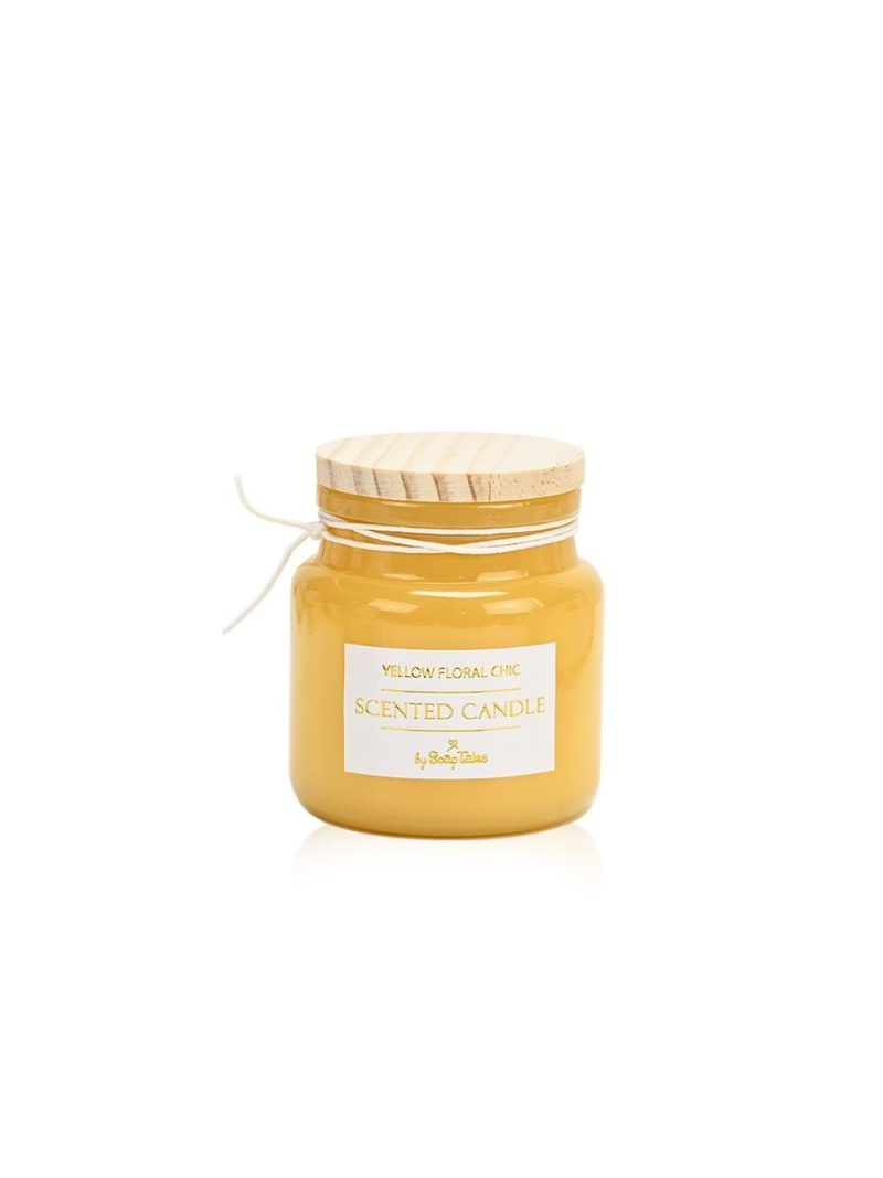 Κερί κίτρινο floral chic με ξύλινο καπάκι ST00889