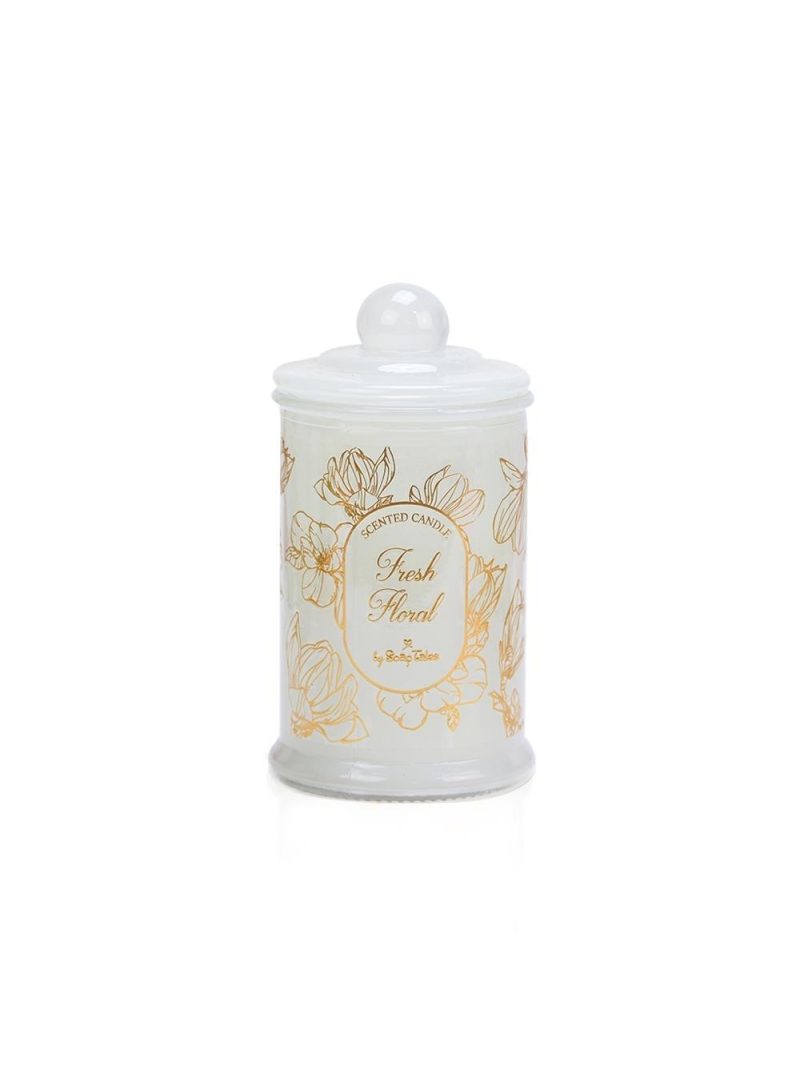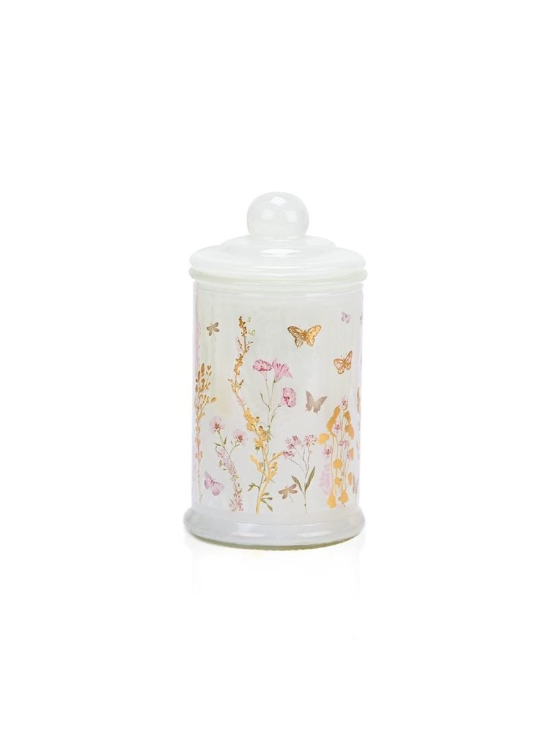 Κερί ψηλό Γυάλινο Λευκό με λουλουδάκια ST00915