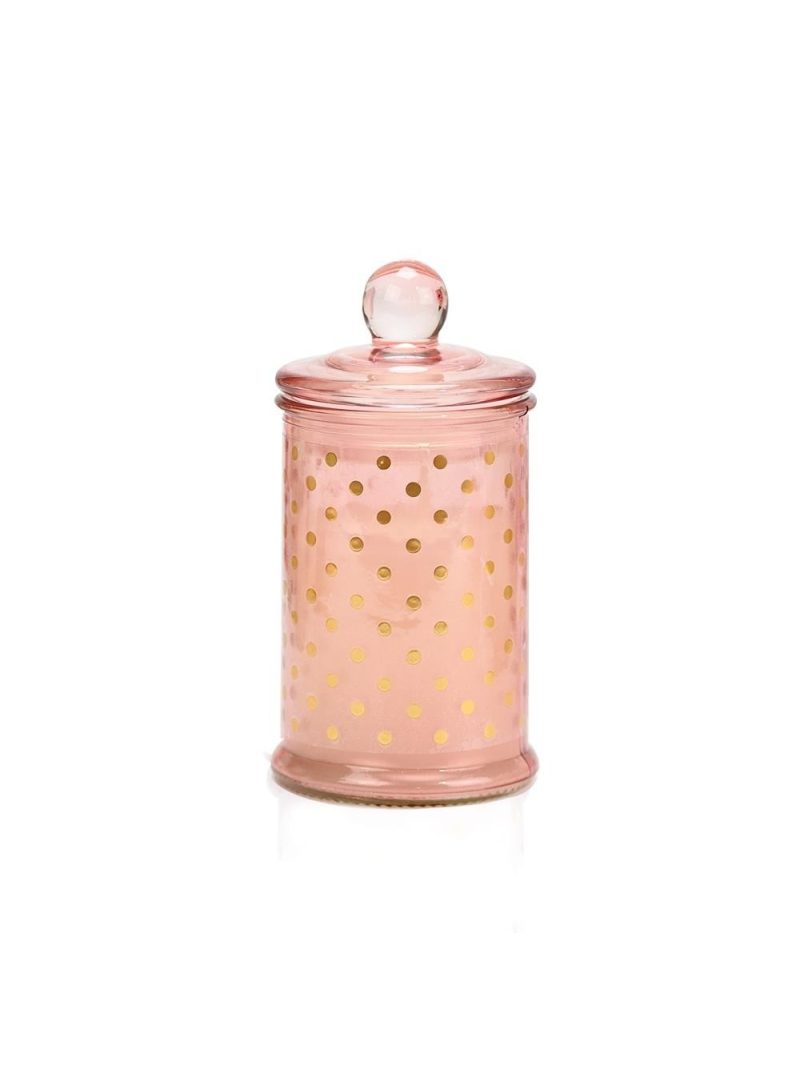 Κερί ψηλό Γυάλινο ροζ χρυσό πουά ST00920