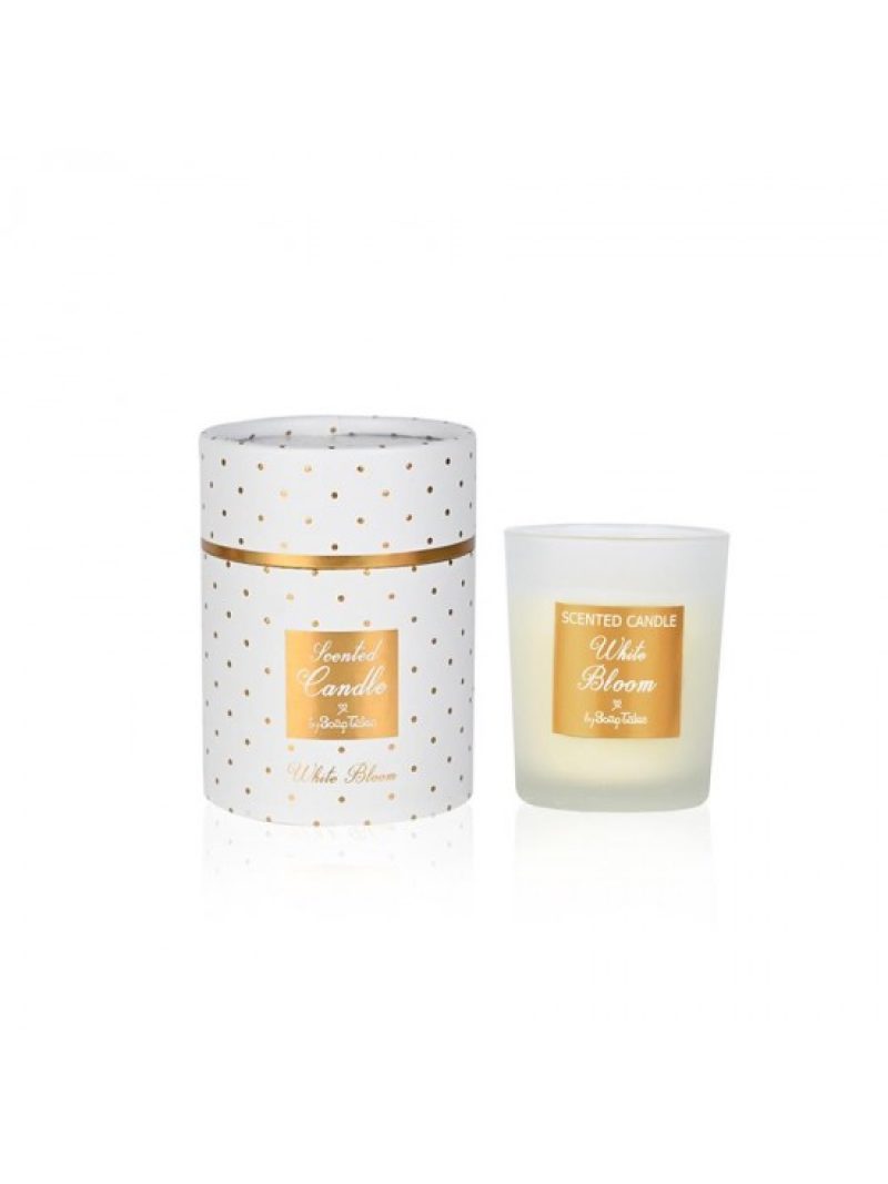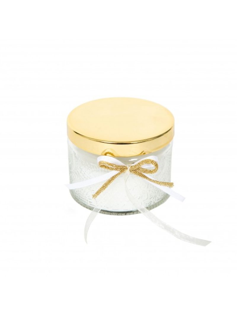 Μπομπονιέρα Κερί λευκό χρυσό πουά white bloom