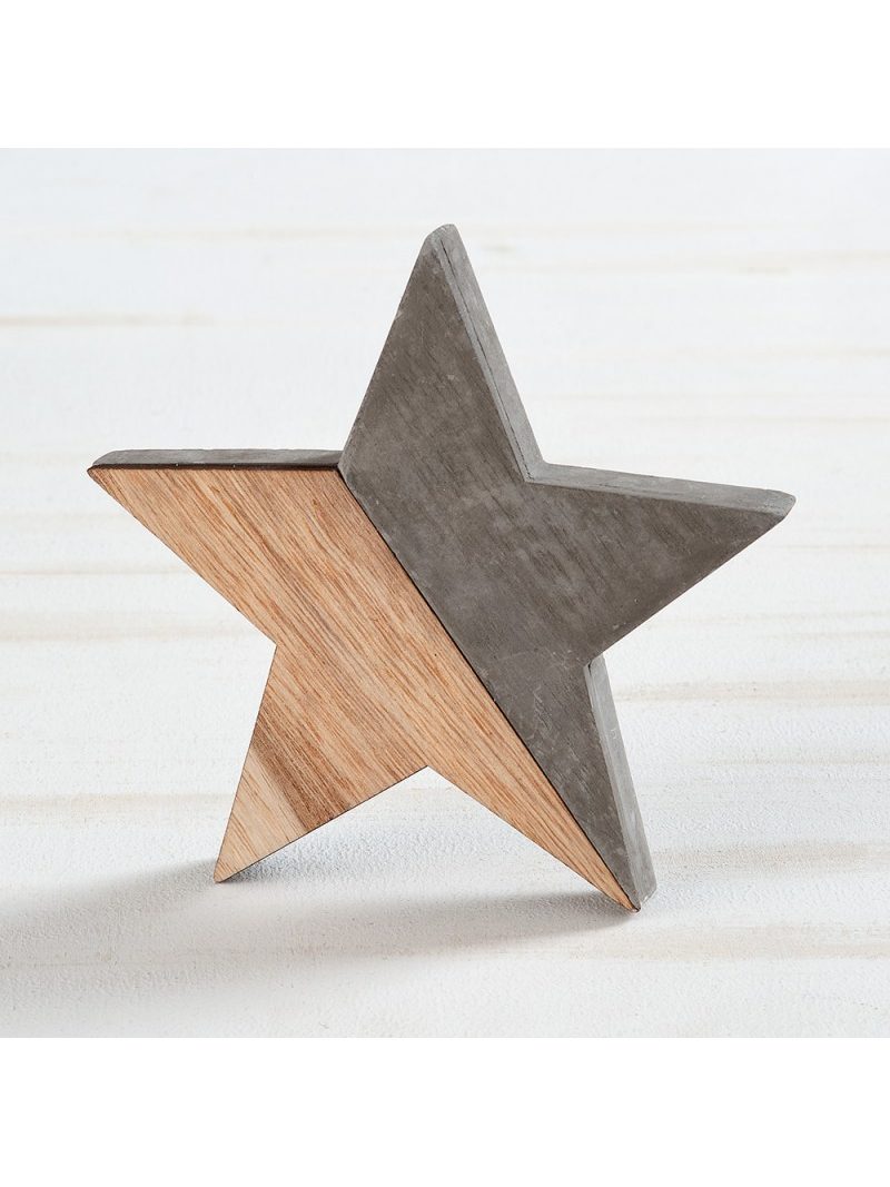 Διακοσμητικό αστέρι. Είναι μια ιδιαιτέρη σύνθεση από τσιμέντο και ξύλο. Βάση: 9.5 x 2cm Άνοιγμα στη μέση:16cm Ύψος:15.5cm