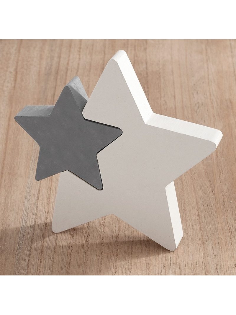 Ξύλινο επιτραπέζιο διπλό διακοσμητικό αστέρι σε σύνθεση και σε απόχρωση λευκή και γκρι Διάστ.: 9,5x2x14,2cm