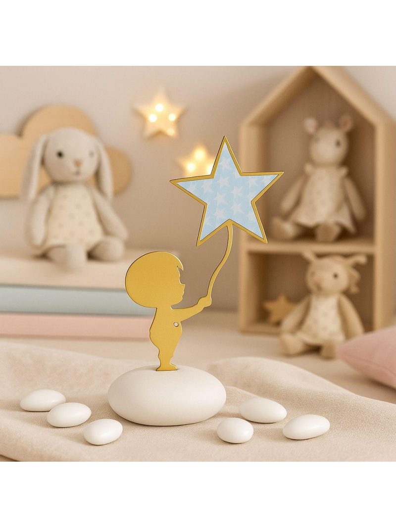Μπομπονιέρα βάπτισης μεταλλικό αγόρι με ένα λαμπερό αστέρι σε βότσαλο, ιδανική για να χαρίσει στους καλεσμένους σας μια ξεχωριστή ανάμνηση.
