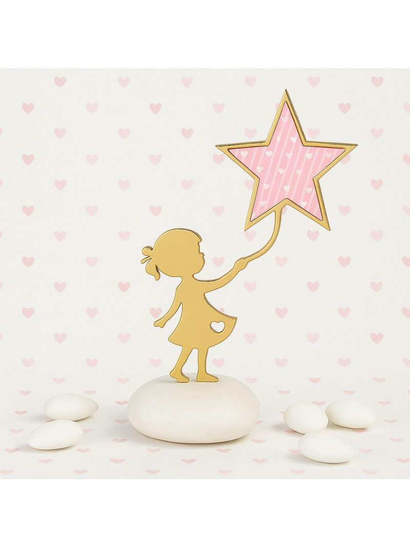 Μπομπονιέρα βάπτισης μεταλλικό κορίτσι με λαμπερό αστέρι σε βότσαλο που αποτελεί έναν όμορφο συνδυασμό φυσικών στοιχείων και παιδικής αθωότητας.
