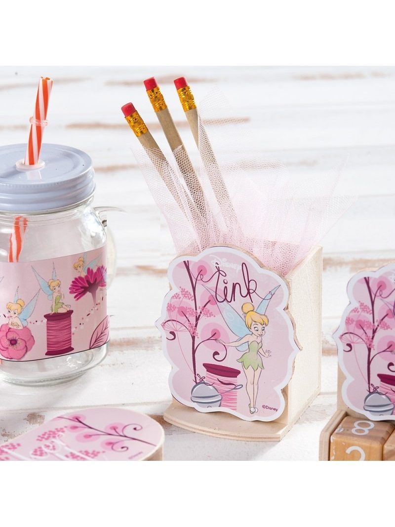 Disney ξύλινη natural μολυβοθήκη. Είναι διακοσμημένη με ξύλινη παράσταση print Tinkerbell flowers σε ροζ αποχρώσεις. Διάστ.: 7x5,5x8cm Κοπτικό: 6,5x0,4x9,5cm