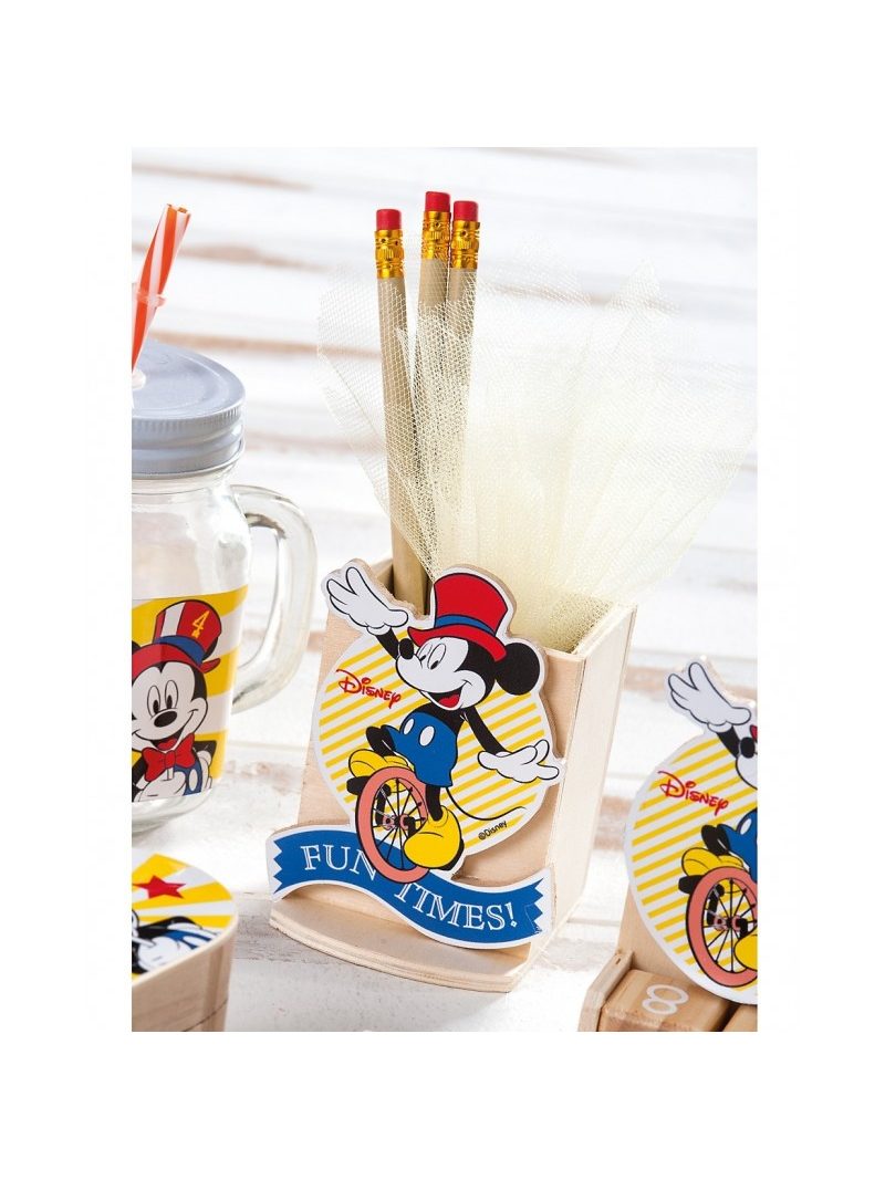 Disney ξύλινη natural μολυβοθήκη. Είναι διακοσμημένη με ξύλινη παράσταση print Mickey Carnival σε κίτρινες-κόκκινες αποχρώσεις. Διάστ.: 7x5,5x8cm Κοπτικό: 8x0,5x11cm