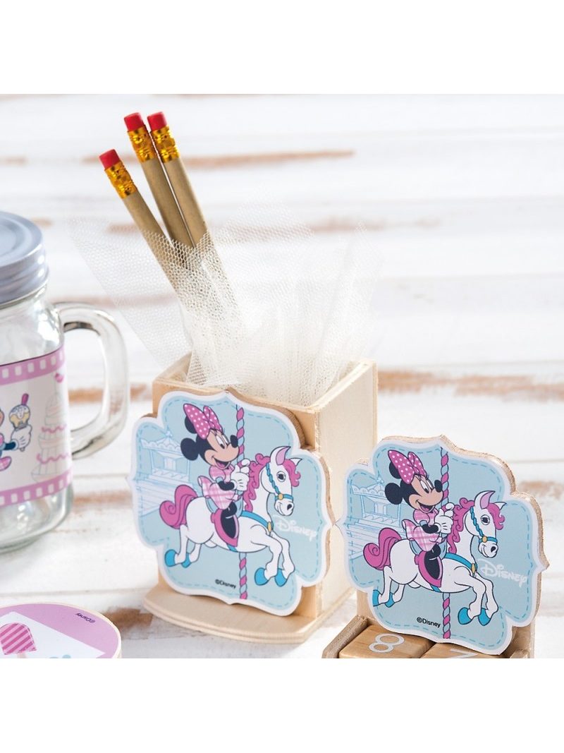 Disney ξύλινη natural μολυβοθήκη. Είναι διακοσμημένη με ξύλινη παράσταση print Minnie Carousel σε σιέλ-ροζ αποχρώσεις. Διάστ.: 7x5,5x8cm Κοπτικό: 8,5x 0,5x9cm