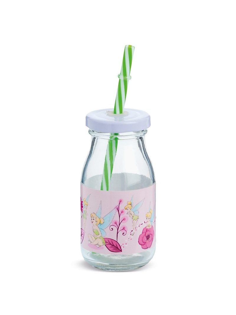 Disney γυάλινο μπουκάλι γάλακτος 200ml με λευκό μεταλλικό καπάκι. Συνοδεύεται από πολύχρωμα καλαμάκια. Είναι διακοσμημένο με αυτοκόλλητο print Tinkerbell flowers σε ροζ αποχρώσεις. Χωρητ.: 200mlΎψος 12,2cm Διάμετρος: 6cm