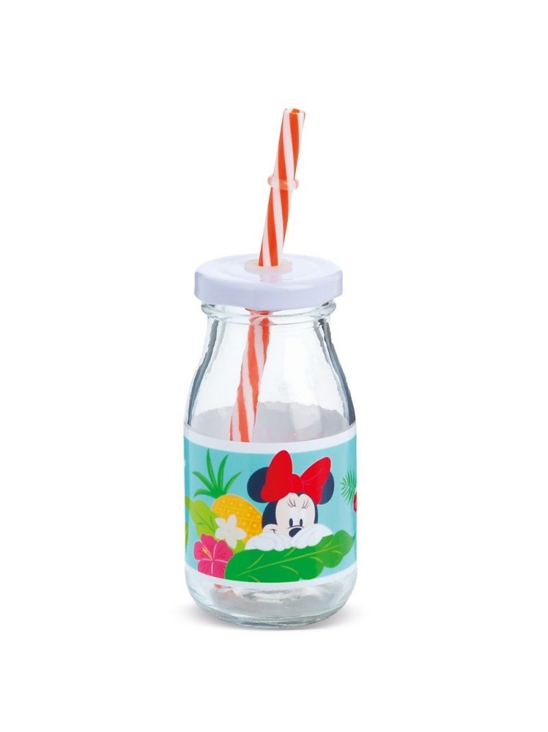 Disney γυάλινο μπουκάλι γάλακτος 200ml με λευκό μεταλλικό καπάκι. Συνοδεύεται από πολύχρωμα καλαμάκια. Είναι διακοσμημένο με αυτοκόλλητο print Minnie Tropical σε βεραμάν-κόκκινες αποχρώσεις. Χωρητ.: 200ml Ύψος 12,2cm Διάμετρος: 6cm