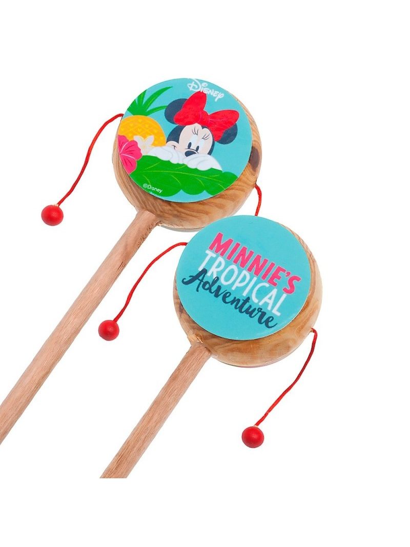 Disney ξύλινο natural τυμπανάκι. Είναι διακοσμημένο με αυτοκόλλητο print Minnie Tropical σε βεραμάν-κόκκινες αποχρώσεις και από τις δυο όψεις. Διάστ.: 6,5x20cm