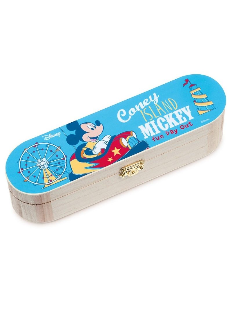 Disney ξύλινη natural κασετίνα με μεταλλικό κούμπωμα. Είναι διακοσμημένη με αυτοκόλλητο print Mickey Fun Day σε τιρκουάζ-κόκκινες αποχρώσεις.