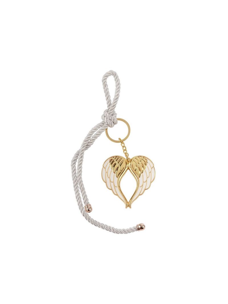 Αφήστε την καρδιά σας να πετάξει με το εντυπωσιακό κρεμαστό μπρελόκ, όπου τα περίτεχνα φτερά ενώνονται με μαγευτική χάρη, σχηματίζοντας ένα σύμβολο απόλυτης αγάπης. Ένα εκλεπτυσμένο κόσμημα που φέρνει μαζί του την ουσία της αφοσίωσης σε κάθε σας στιγμή. Ύψος: 25cm x Πλάτος: 6.3cm