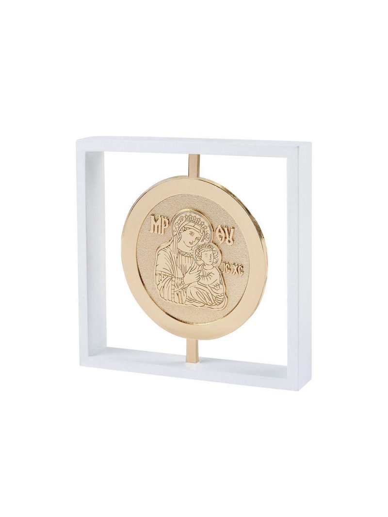 Ανακαλύψτε την απόλυτη έκφραση μοναδικής αισθητικής και πολυτέλειας μέσα από το εξαιρετικό δώρο που αναδεικνύει την Παναγία πλαισιωμένη σε ένα λευκό καδράκι. Ύψος: 9cm x Πλάτος: 9cm