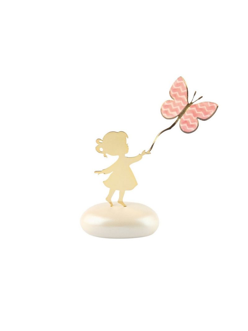 Χαρίστε στους καλεσμένους σας μια ανάμνηση που θα φτερουγίζει στην καρδιά τους με την μπομπονιέρα βάπτισης ενός μεταλλικού κοριτσιού που αναδεικνύει μια υπέροχη πεταλούδα σε βότσαλο.