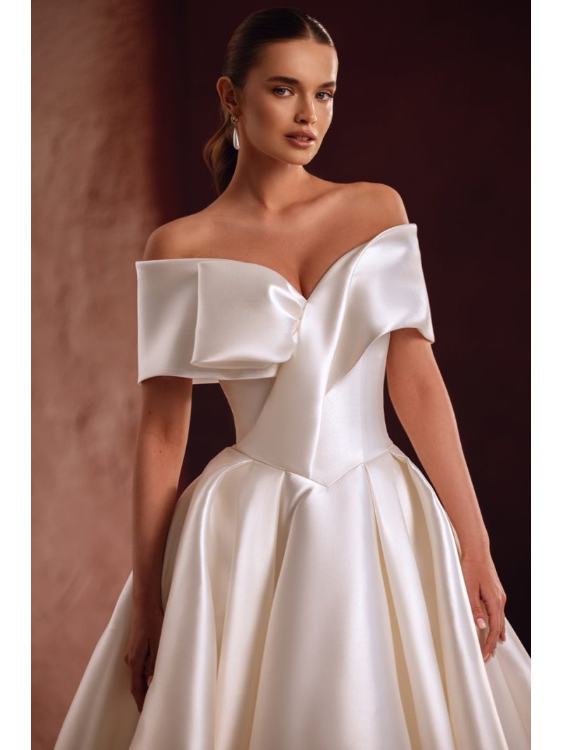 Το Avin είναι ένα φόρεμα σχεδιασμένο για νύφες που θέλουν να συνδυάσουν την κλασική κομψότητα με μια μοντέρνα πινελιά. Το ντεκολτέ με τους ώμους πλαισιώνει όμορφα τους ώμους, ενώ το δομημένο μπούστο αναδεικνύει τη μέση και δημιουργεί μια εκλεπτυσμένη σιλουέτα. Οι φαρδιές σατέν πτυχώσεις προσθέτουν βάθος και κομψότητα, και η πλήρης φούστα ρέει σε μια φαρδιά ουρά που ολοκληρώνεται με μια λεπτή σειρά από καλυμμένα κουμπιά στην πλάτη. Κάθε στοιχείο έχει κατασκευαστεί για να δώσει στο φόρεμα μια βασιλική αλλά και αβίαστη παρουσία, καθιστώντας το ιδανική επιλογή για νύφες που ονειρεύονται μια μεγαλοπρεπή είσοδο. Αυτό το φόρεμα δημιουργήθηκε για γυναίκες που θέλουν να αισθάνονται χαριτωμένες, σίγουρες και αξέχαστες την ημέρα του γάμου τους - ένα διαχρονικό σχέδιο ερμηνευμένο με μια φρέσκια, σύγχρονη στάση.