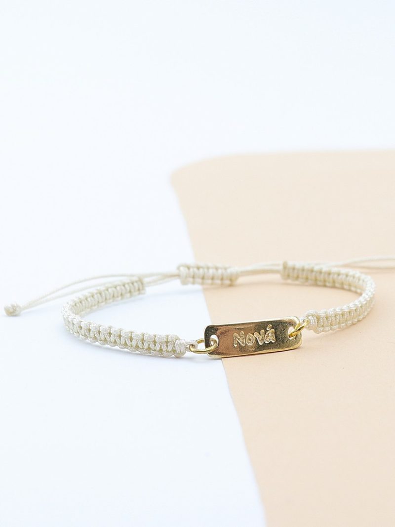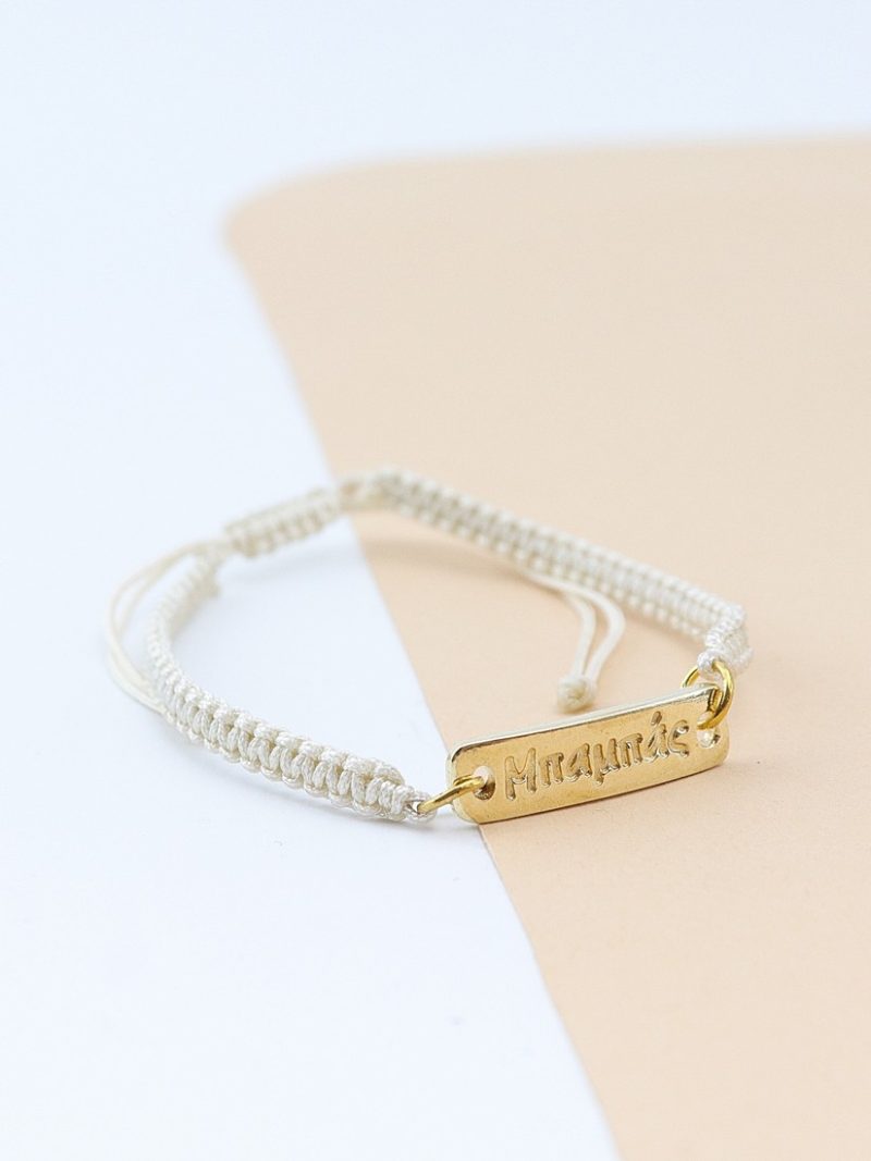 Μαρτυρικό βραχιόλι μακραμέ με όνομα εκρού EM101