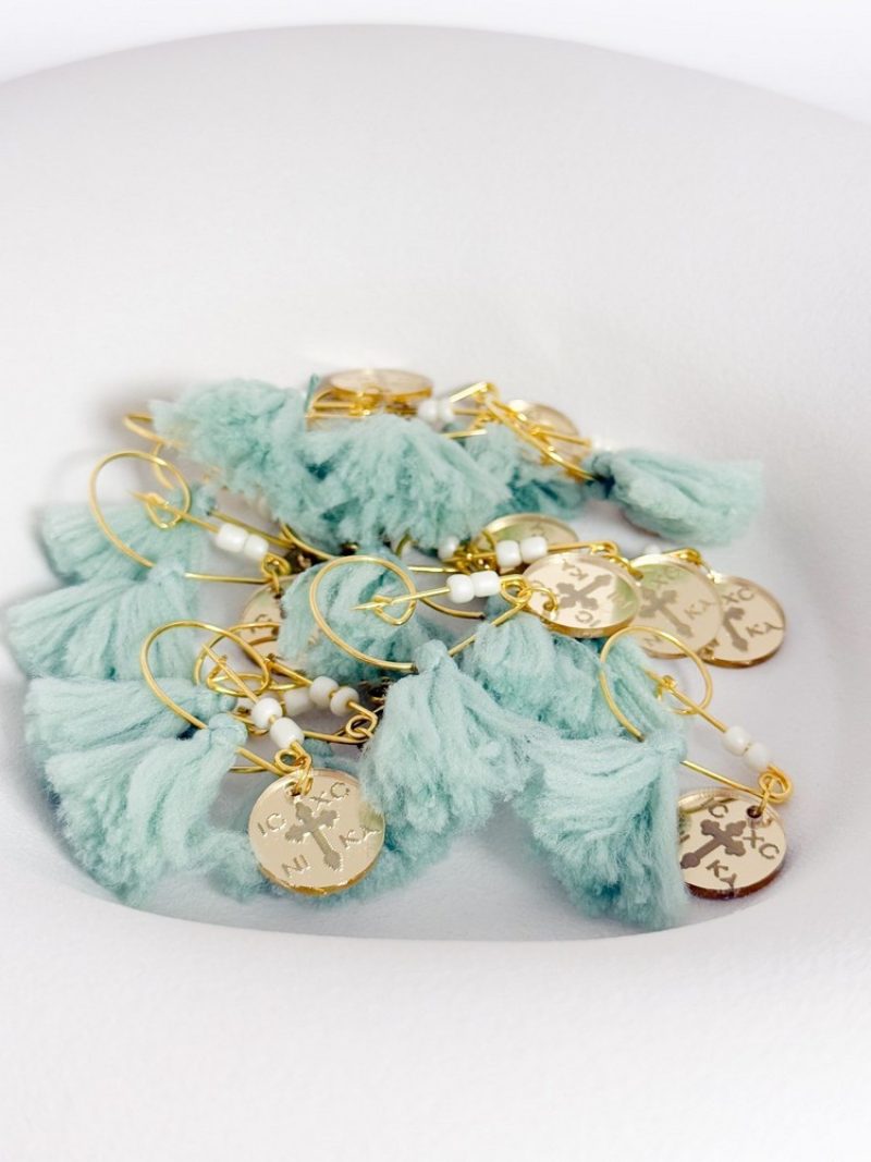 Μαρτυρικό μπρελόκ με επιχρυσωμένο σταυρό και φούντα L51(50τμχ)