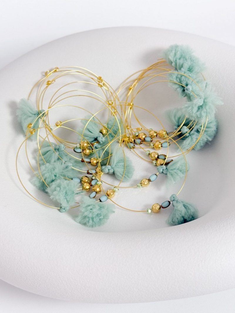 Μαρτυρικό βραχιόλι με επιχρυσωμένο σταυρό ,φούντα και memory wire L55 (50τμχ)