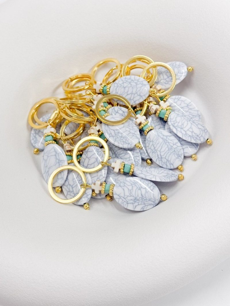 Μαρτυρικό μπρελοκ με χαολίτη σταυρό,κύβο και χάντρα με νερά L59 (50τμχ)