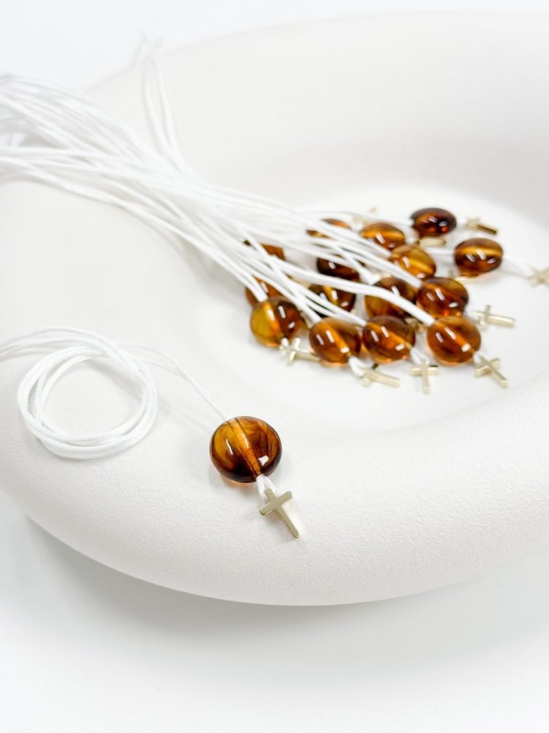 Μαρτυρικό μπεγλέρι με ξύλινο λευκό σταυρό και χάντρες M80 (50τμχ)