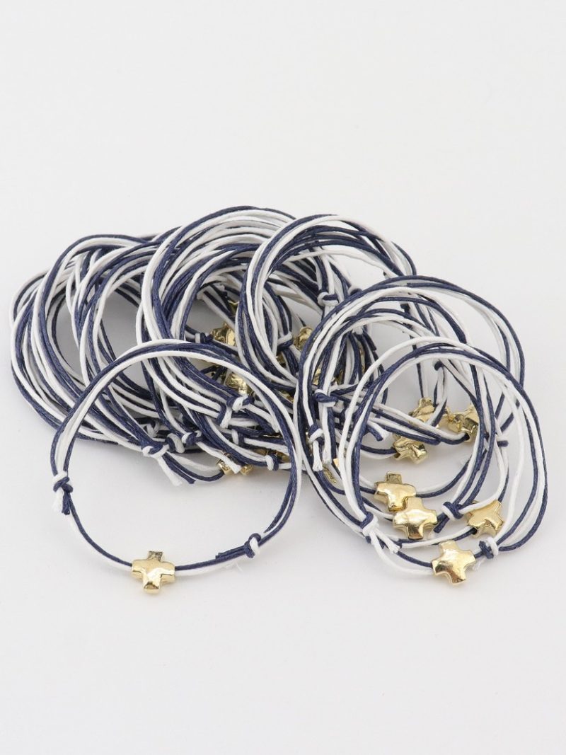 Μαρτυρικό βραχιόλι με ακρυλικό σταυρό σε σχήμα λουλούδι, χάντρες και κερωμένο κορδόνι R46 (50τμχ)