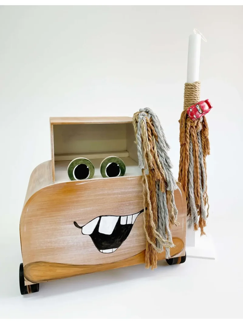✔ Λαμπάδα βάπτισης, διακοσμημένη με ξύλινο στοιχείο UV εκτύπωσης ζωάκια της ζούγκλας, boho κορδέλες και γήινα υφάσματα.
