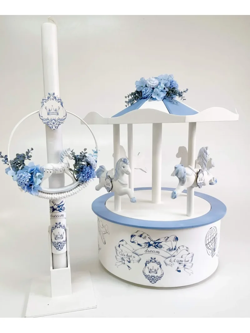 Σετ Βάπτισης Αγόρι Carousel Kούνιες Aλογάκι Γαλάζιο A25-010