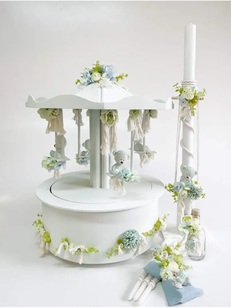 Σετ Βάπτισης Αγόρι Carousel κούνιες αρκουδάκι γαλάζιο-λαχανί A25-011