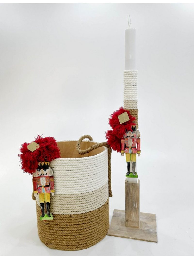 ✔ Λαμπάδα βάπτισης, διακοσμημένη με ξύλινο στοιχείο ζωγραφικής των ζώων, αέρινα υφάσματα και φυσικά σχοινιά.