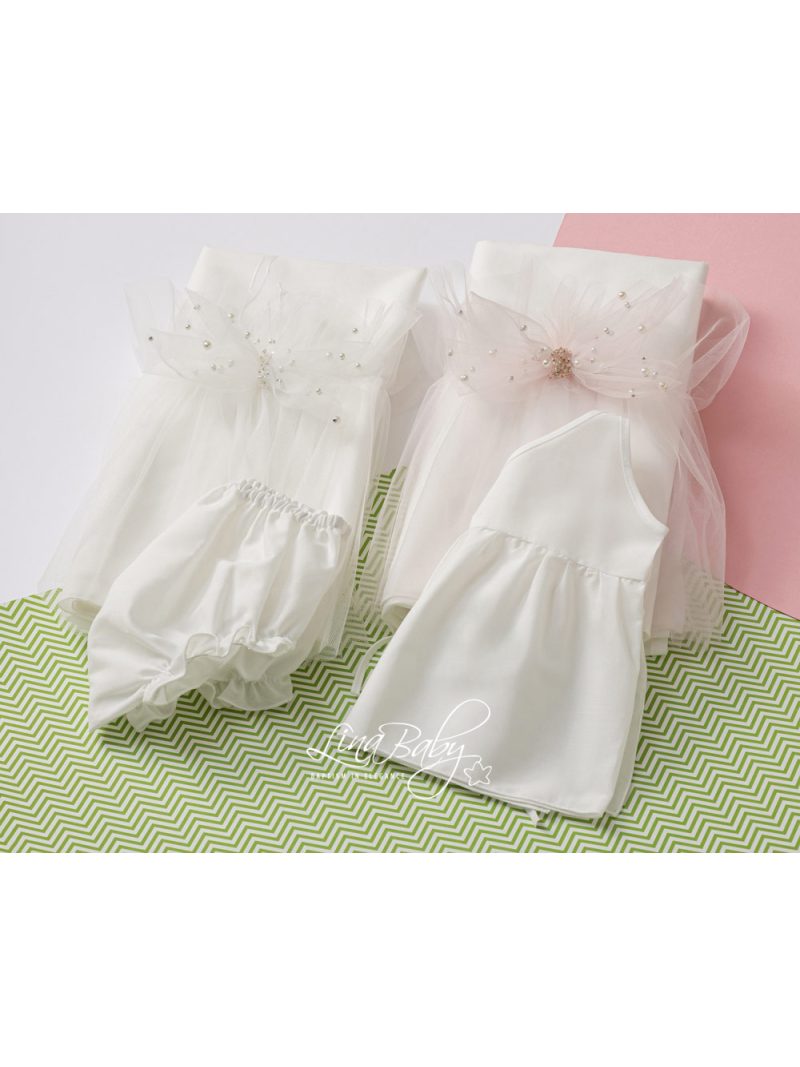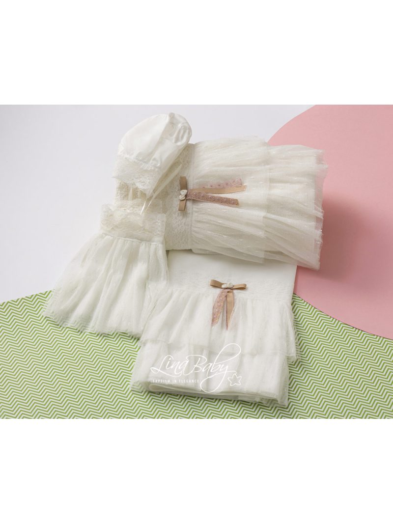 Μπιάνκα το λαδόπανο που ταιριάζει με όλα τα σετ βάπτισης. Girly and sparkle... Ονειρικό βαμβακερό σετ λαδόπανων σε εκρού χρώμα με βολάν από τούλι ροζ και διακοσμητικό φιόγκο με πέρλες και στρας. Πετσέτα 70*140*400gr2. Πετσέτα παπά 30*50*400gr2. Ολες οι πετσέτες της Lina Baby φέρουν την ετικέτα STANDARD 100 by OEKO-TEX® (Αυτό σημαίνει ότι τα προϊόντα δεν περιέχουν επιβλαβή επίπεδα χημικών ουσιών.
